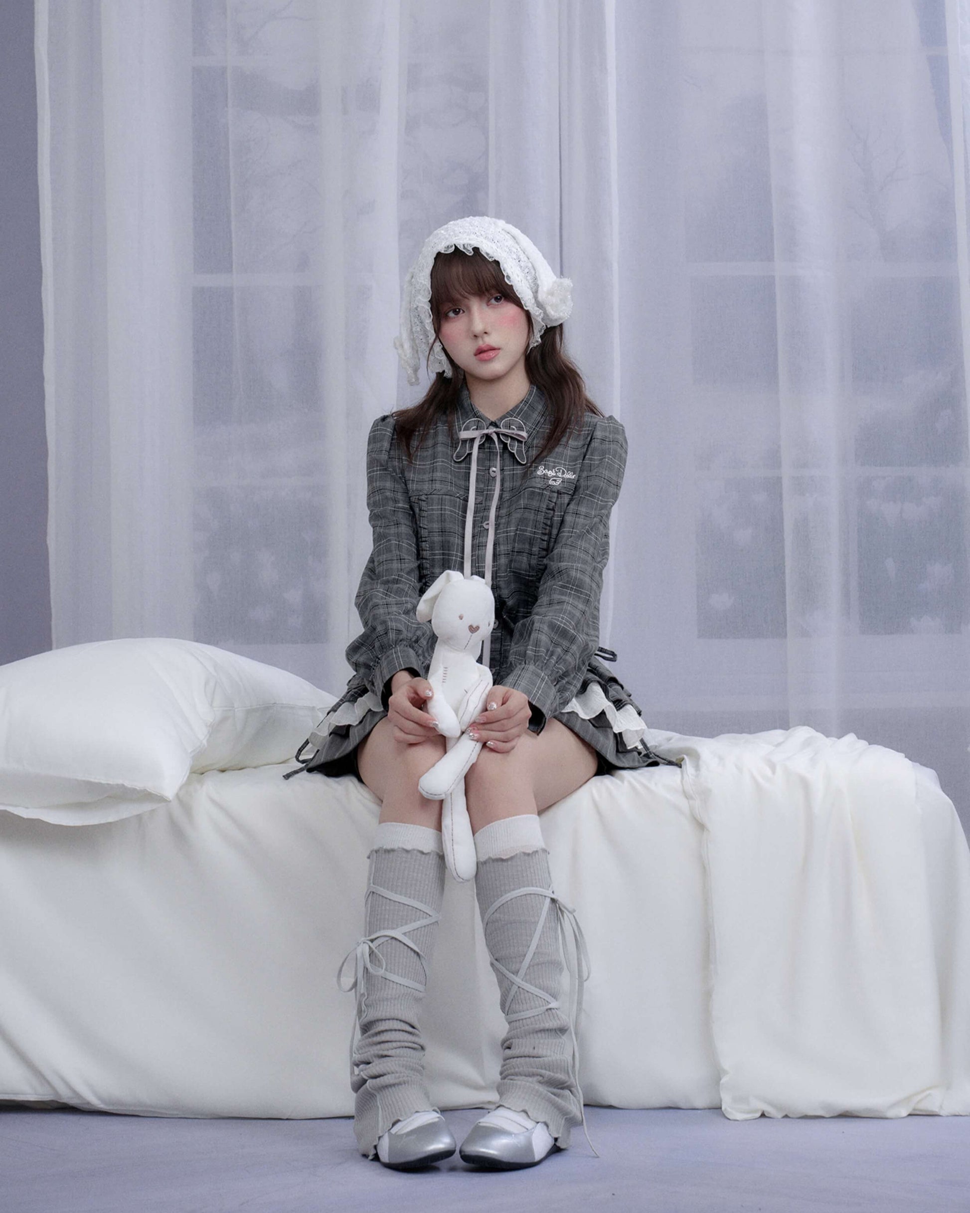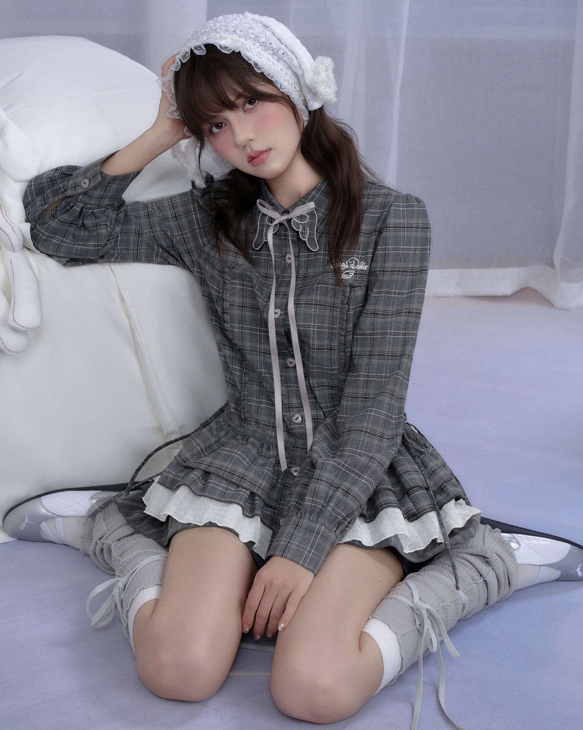 CHECK LACE COLLAR RIBBON MINI DRESS