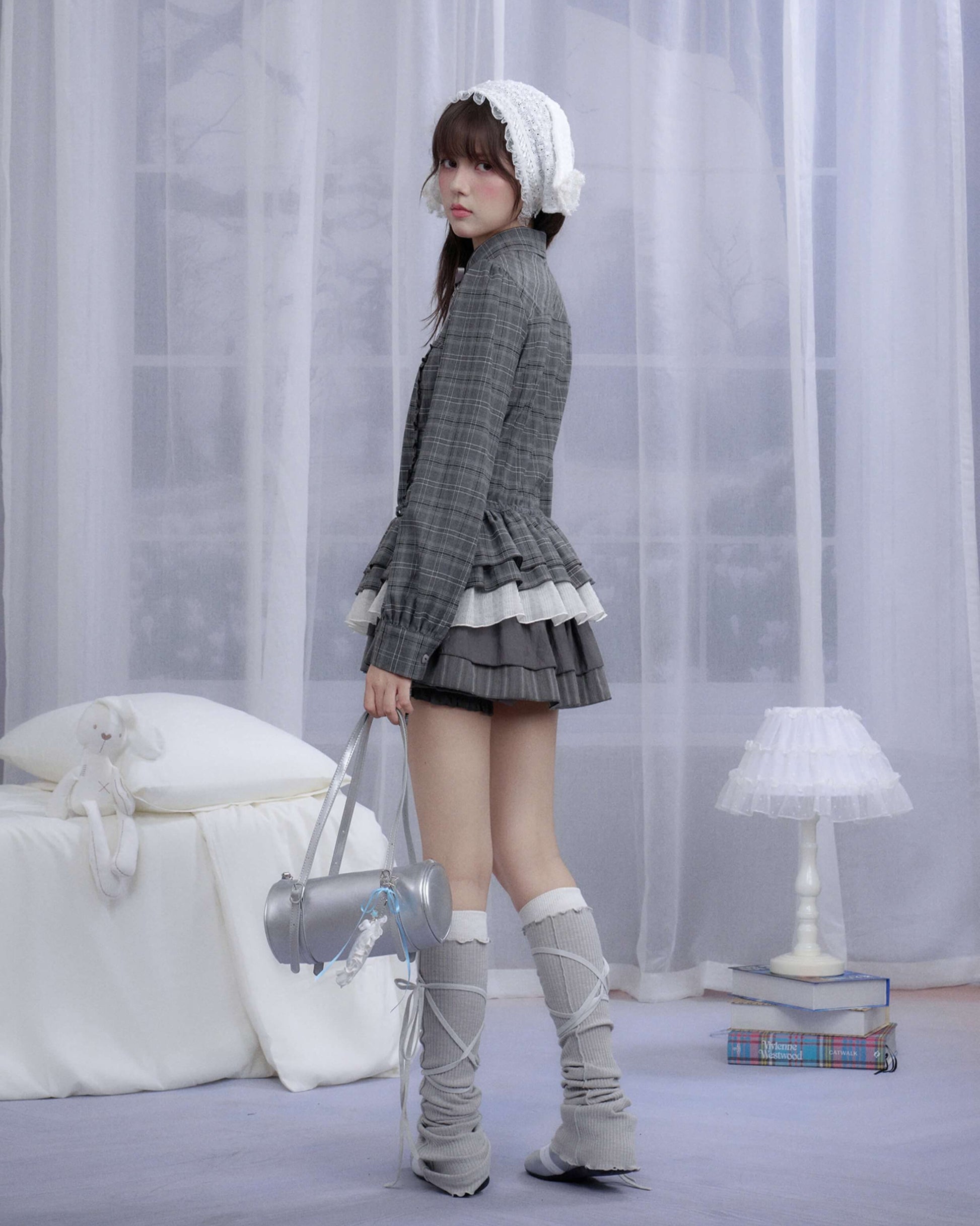CHECK CROPPED JACKET MINI SKIRT SET UP